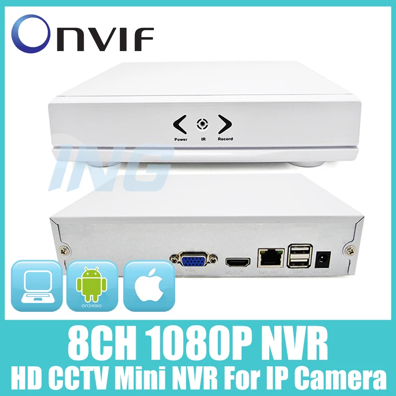 Main Features : 8 Channel HD 1080P Mini NVR H.264 Network Video Recorder HDMI 8 CH CCTV NVR for IP Camera Support CMS ONVIF 2.0 P2P Cloud System