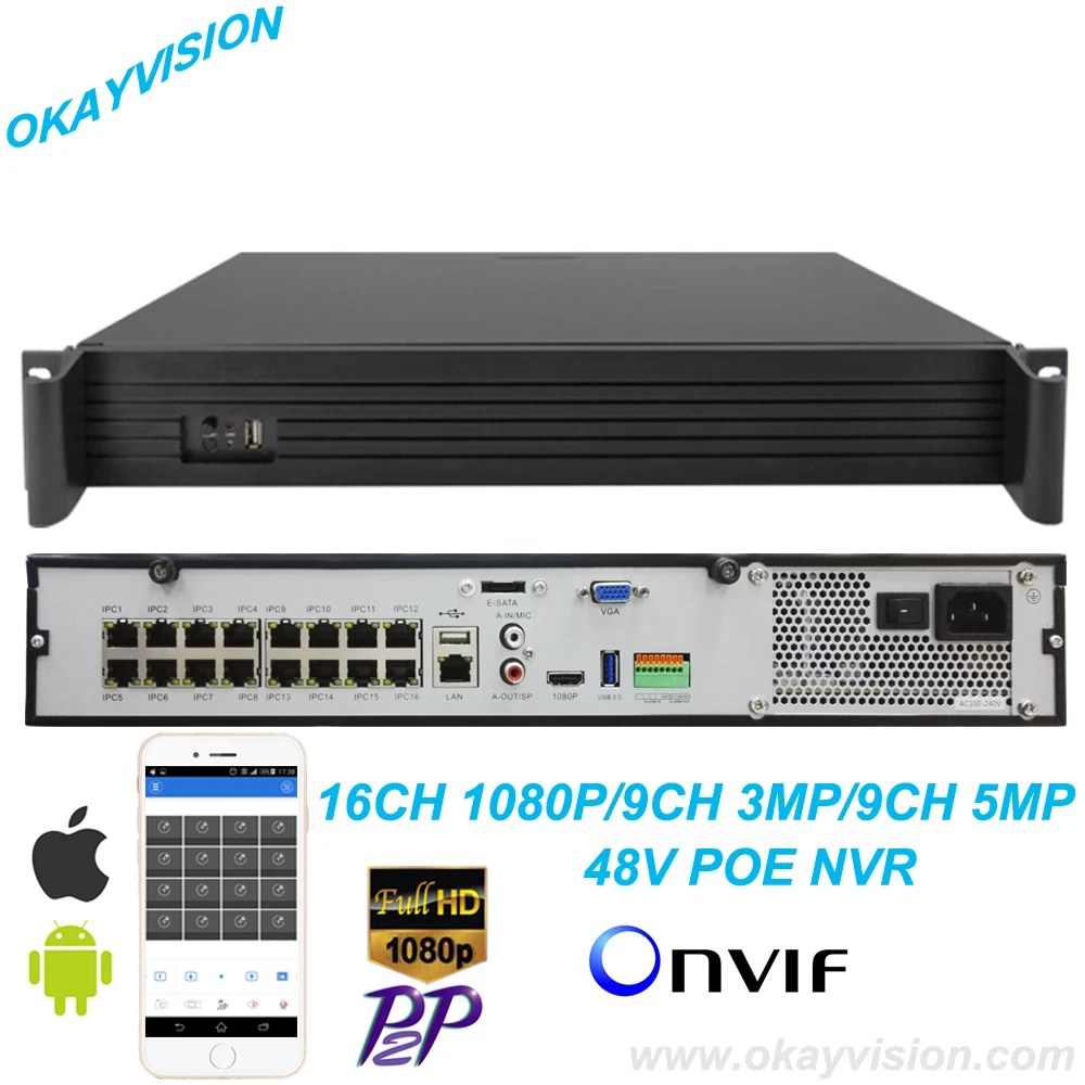 Main Features : Full hd DC 48V 16 ch 1080P POE NVR 5MP 3MP POE NVR Embedded LINUX Full HD Motion Detection 16CH P2P Onvif POE NVR