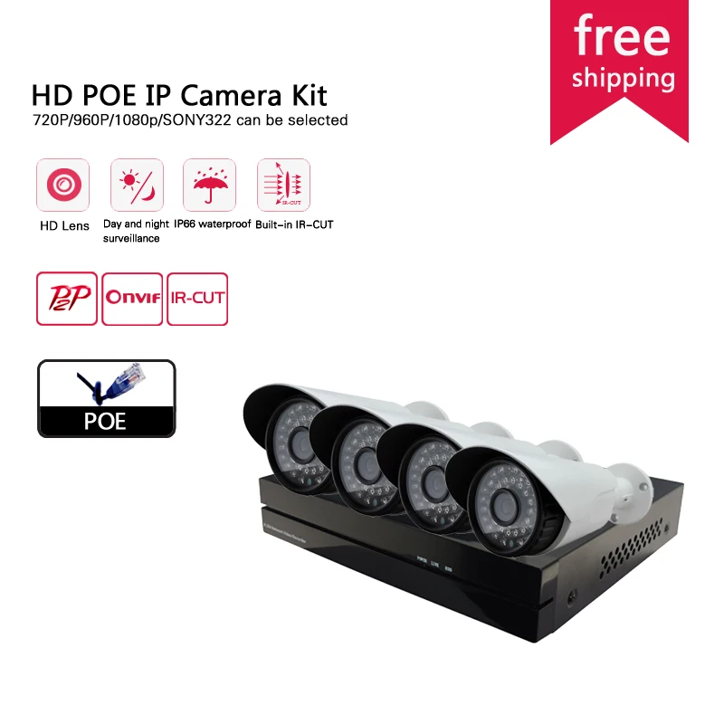 Main Features : White matel POE IP Camera 720p/1080p SONY 322 Surveillance Camera POE security CCTV system kit 48v nvr system with Plug and play