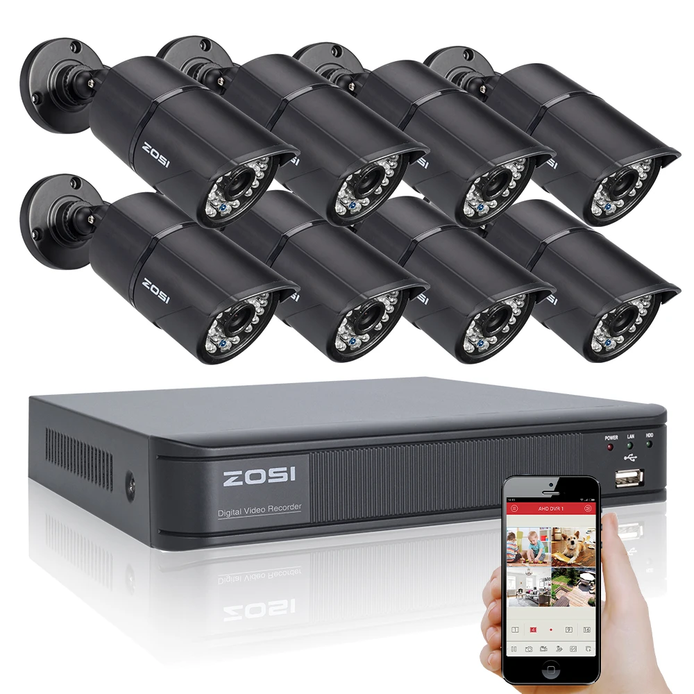 Main Features : ZOSI 720P HD 1200TVL Outdoor Security Camera System 1080P HDMI CCTV Video Surveillance 8CH DVR Kit AHD Camera Set